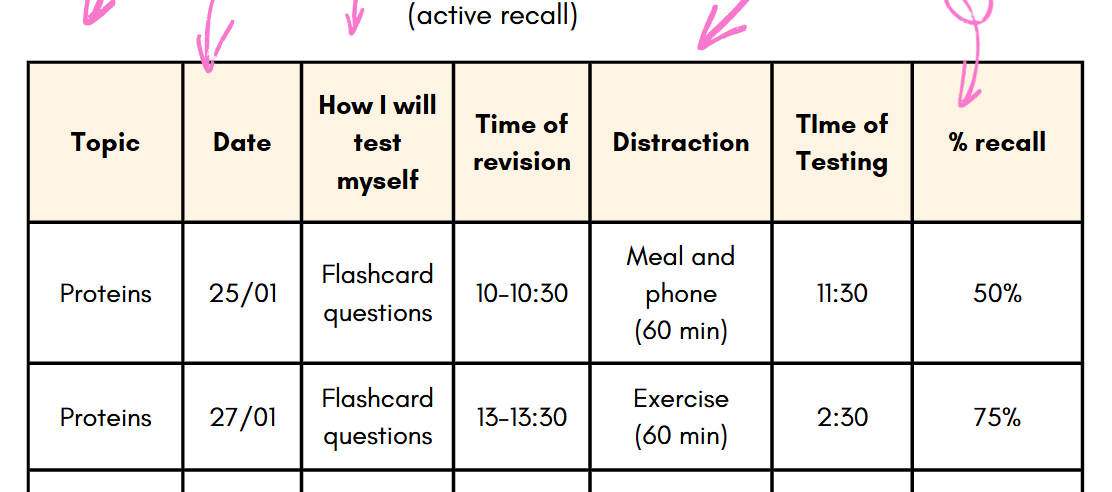 Remember that the amount of time you’ve spent, or the amount you’ve written out, are not measures of an effective revision session. How much you can recall is.